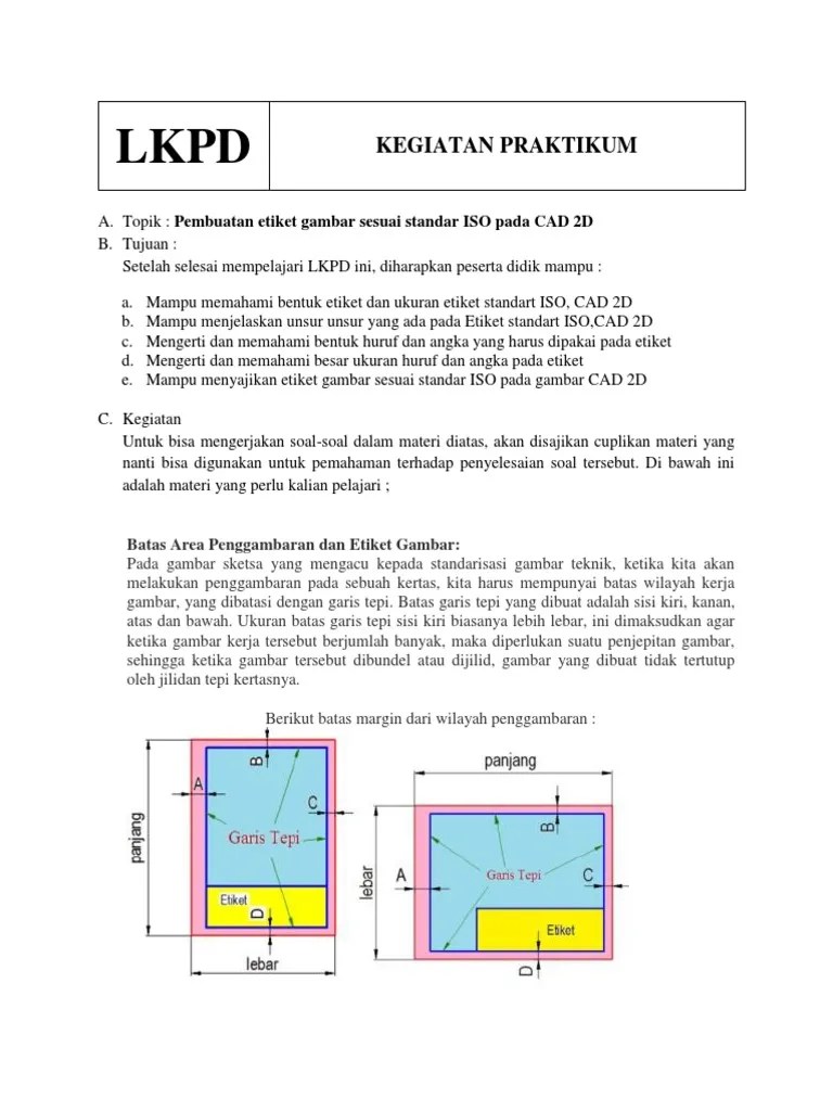 Lembaga yang membuat standar penyajian gambar teknik skala internasional adalah iso. Kd 4.3 menyajikan huruf, angka dan etiket gambar teknik. Garis tepi dan etiket dibuat berdasarkan aturan dan standar yang . Berikut tabel data batas margin yang sesuai dengan standar iso. Gambar/etiket, agar sebuah gambar dapat dibaca sesuai dengan standar.